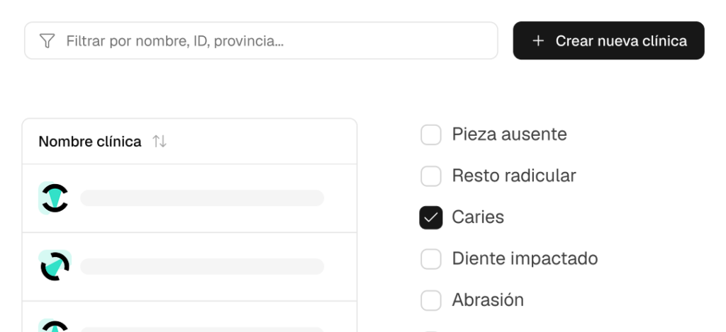 La capacidad de Dentomo para identificar automáticamente más de 10 patologías bucales y más de 14 tratamientos, ahora con búsqueda detallada por entidad, clínica o usuario ofrece información completa sobre la salud bucal del paciente. Esta gran cantidad de información permite a los profesionales tomar decisiones bien informadas, lo que lleva a planes de tratamiento más personalizados y un mayor nivel de atención médica.